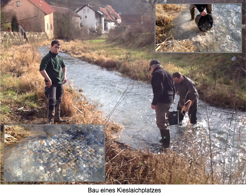 Um durch Schmutzfrachten und Hochwässer verursachte Fehlschläge zu vermeiden, wurde in der Nr. 10 des „Fischer und Teichwirt“ Jahrgang 2014, die Methode beschrieben, welche eine größere Sicherheit bietet als dies nur normal eingebrachte Kiesschüttungen können.